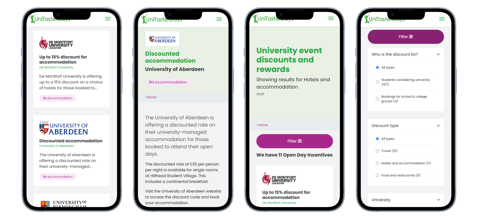 Create a new section on the UniTasterDays website to allow schools and students to find incentives and perks when attending events and open days at universities.